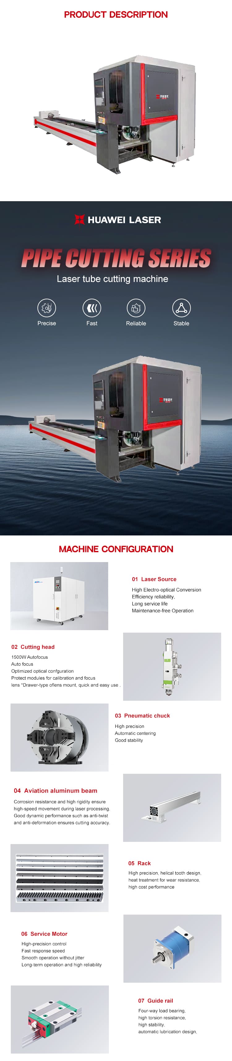 HUAWEI LASER 6000W உயர் துல்லியமான டபுள்-சக்ஸ் டியூப் ஃபைபர் லேசர் வெட்டும் இயந்திரம் சுற்று, சதுர மற்றும் ஒழுங்கற்ற உலோக குழாய்களை திறமையான மற்றும் துல்லியமான செயலாக்கத்திற்காக வடிவமைக்கப்பட்டுள்ளது. அதிவேக வெட்டும் போது அதன் இரட்டை சக் அமைப்பு நிலையான கிளாம்பிங், குறைந்தபட்ச அதிர்வு மற்றும் துல்லியமான சுழற்சி ஆகியவற்றை உறுதி செய்கிறது. உயர்-செயல்திறன் கொண்ட ஃபைபர் லேசர் மூலமும், அறிவார்ந்த கட்டுப்பாட்டு மென்பொருளும் பொருத்தப்பட்டிருக்கும், இது சுத்தமான வெட்டுக்கள், மென்மையான விளிம்புகள் மற்றும் சிறந்த மறுபரிசீலனை ஆகியவற்றை வழங்குகிறது. HUAWEI LASER Double-Chucks Tube Fiber Laser Cutting Machine என்பது ஒரு மேம்பட்ட கையடக்க லேசர் வெல்டிங் மெஷின் மாற்றாக குறிப்பாக உயர் திறன் கொண்ட குழாய் மற்றும் குழாய் செயலாக்கத்திற்காக வடிவமைக்கப்பட்டுள்ளது. இரட்டை நியூமேடிக் சக்ஸுடன் பொருத்தப்பட்டிருக்கும், இது நிலையான கிளாம்பிங், தானியங்கி மையப்படுத்துதல் மற்றும் சுற்று, சதுரம் மற்றும் ஒழுங்கற்ற உலோகக் குழாய்களில் மென்மையான, துல்லியமான வெட்டுக்களுக்கான துல்லியமான சுழற்சியை உறுதி செய்கிறது. அதன் உயர்-சக்தி ஃபைபர் லேசர் மூலமானது வேகமாக வெட்டும் வேகம், சுத்தமான விளிம்புகள் மற்றும் குறைந்தபட்ச வெப்ப சிதைவை வழங்குகிறது. உலோகத் தயாரிப்பு, தளபாடங்கள் உற்பத்தி, உடற்பயிற்சி உபகரண உற்பத்தி, மற்றும் வாகனக் கூறுகள் ஆகியவற்றிற்காக வடிவமைக்கப்பட்ட, HUAWEI லேசர் குழாய் வெட்டும் அமைப்பு, நவீன தொழில்துறை பயன்பாடுகளுக்கு மிகச்சிறந்த துல்லியம், நம்பகத்தன்மை மற்றும் உற்பத்தித்திறனை வழங்குகிறது. இந்த இயந்திரம் தானியங்கி ஏற்றுதல், உகந்த வெட்டு பாதைகள் மற்றும் விரைவான பொருள் மாறுதல் ஆகியவற்றை ஆதரிக்கிறது. இது குழாய் செயலாக்க பயன்பாடுகளுக்கு வலுவான நம்பகத்தன்மை மற்றும் நிலையான உற்பத்தித்திறனை வழங்குகிறது.